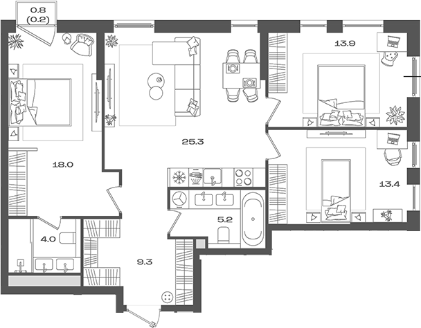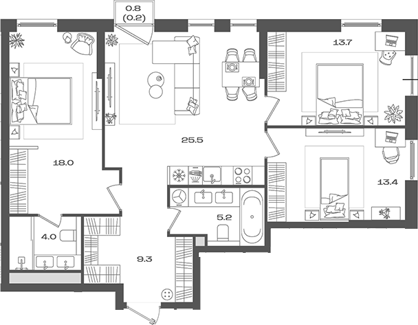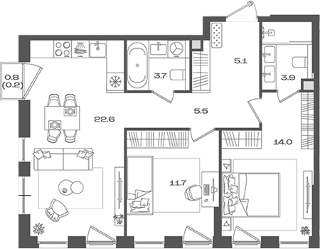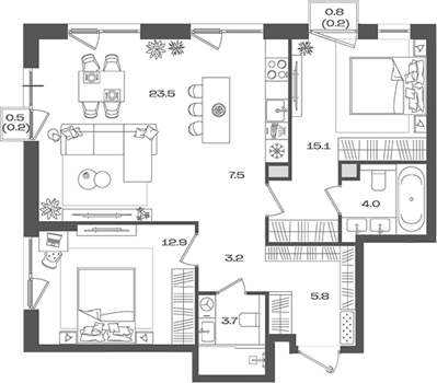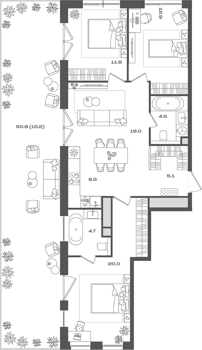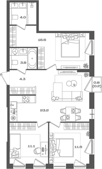 Площадь от 74.8 м2