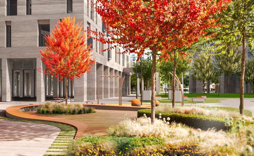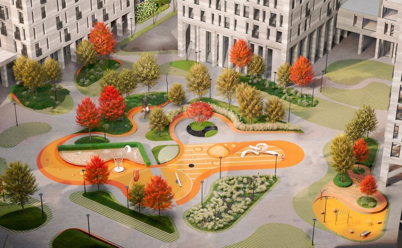 В проекте Pave предусмотрены уютные зоны для отдыха, детские площадки и спортивные площадки, что создает комфортную атмосферу для семейной жизни