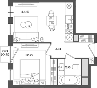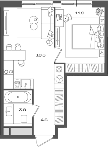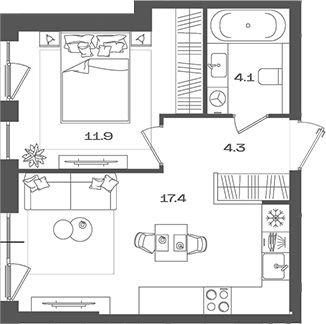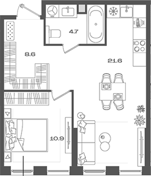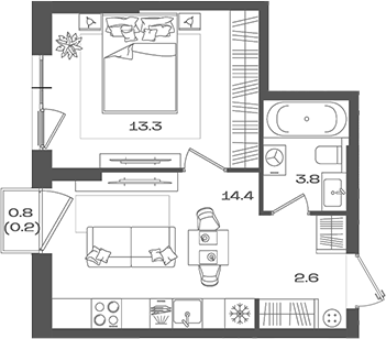 Площадь от 33.7 м2