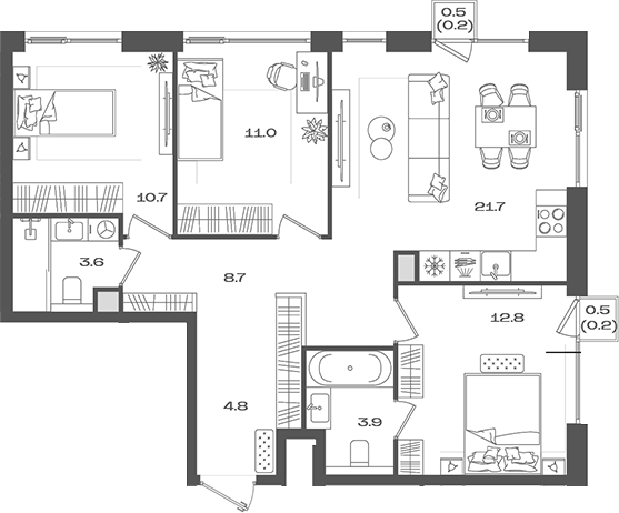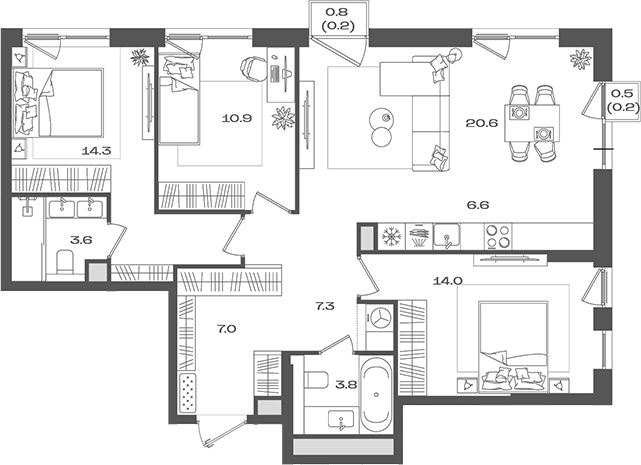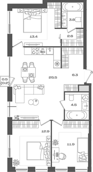 Площадь от 59.6 м2