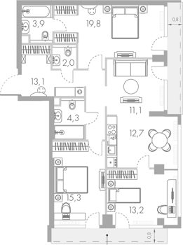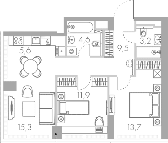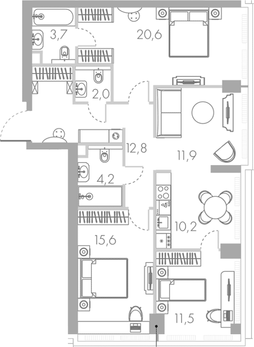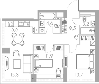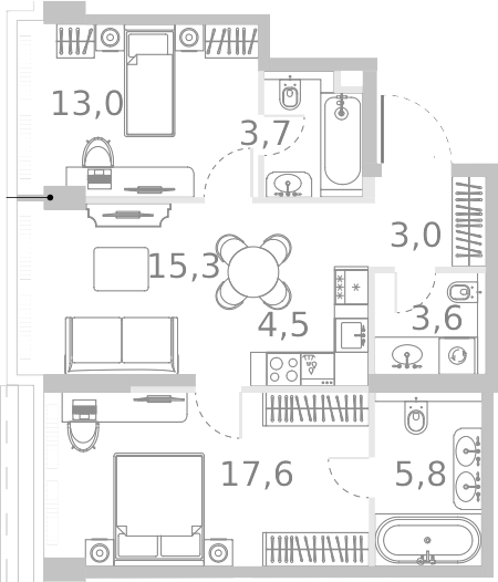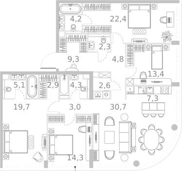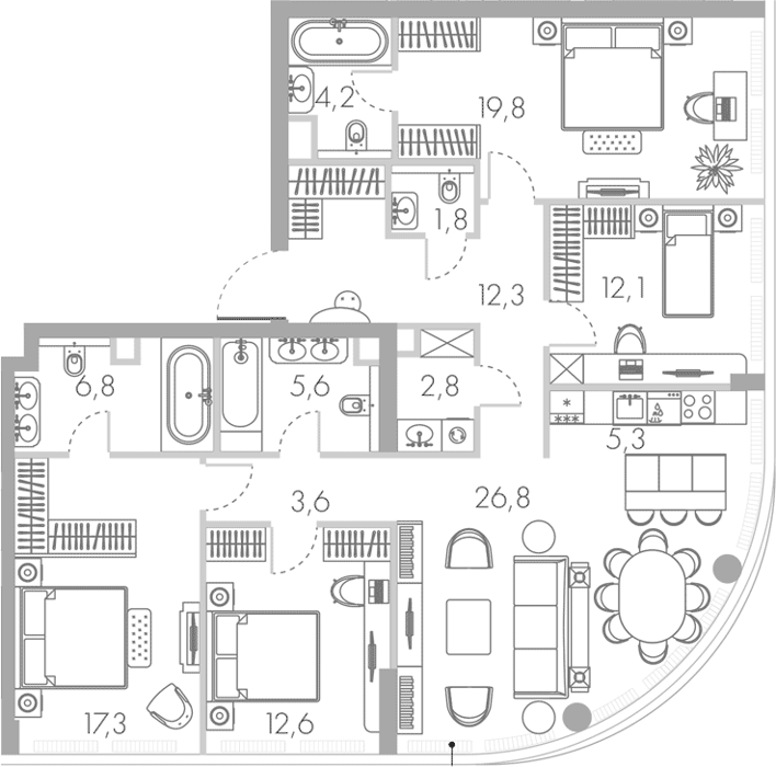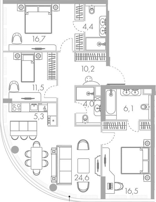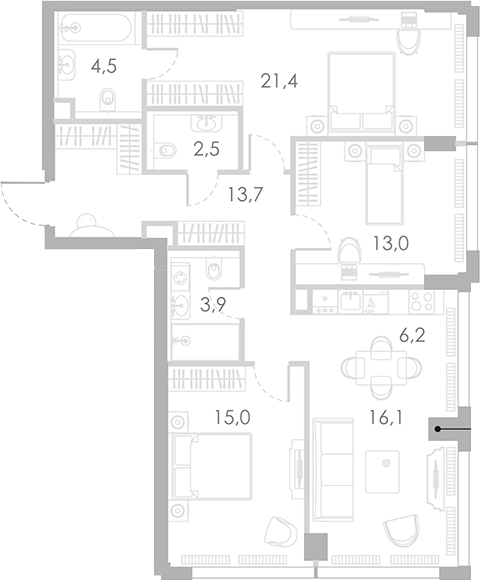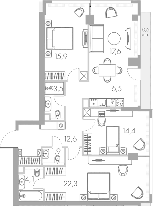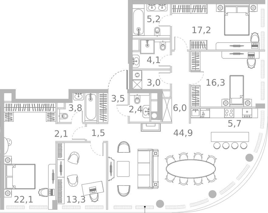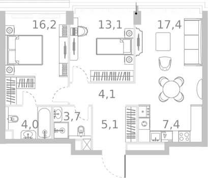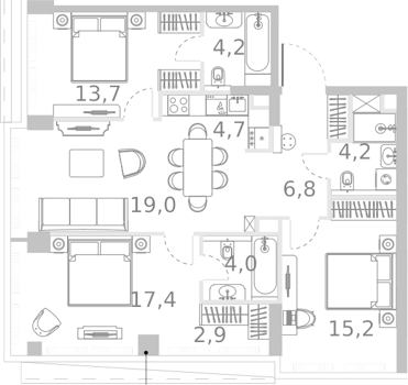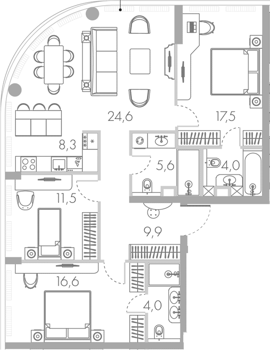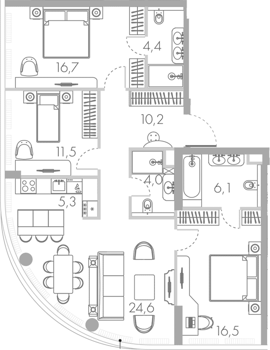 В комплексе представлены квартиры различных планировок — от уютных студий до просторных многокомнатных апартаментов, что позволяет каждому выбрать идеальное жилье