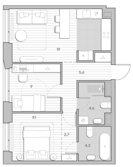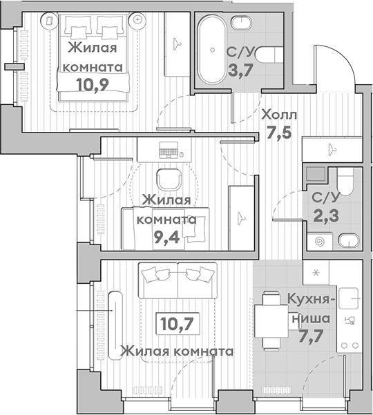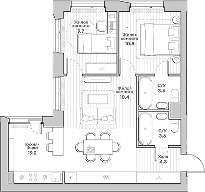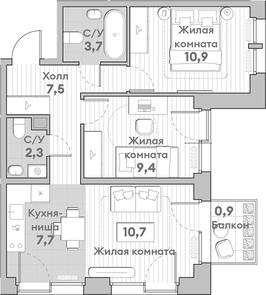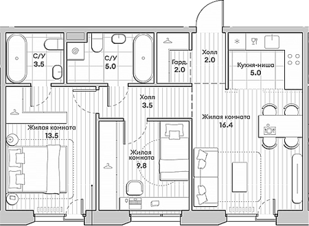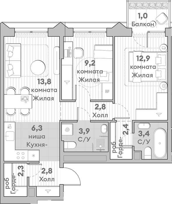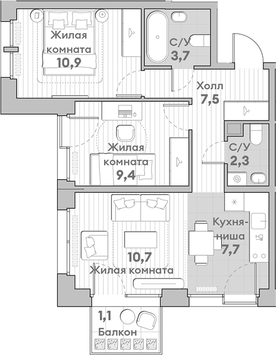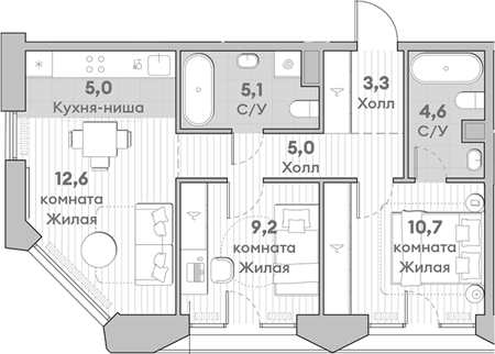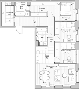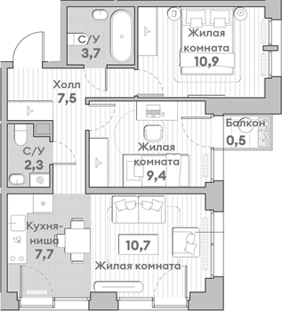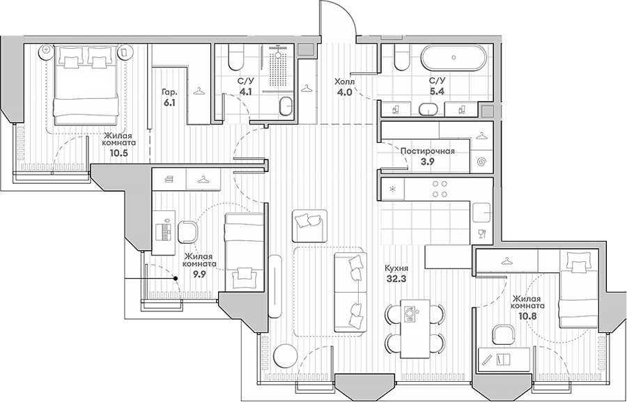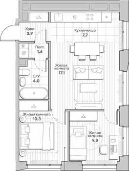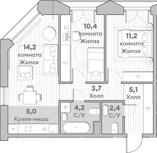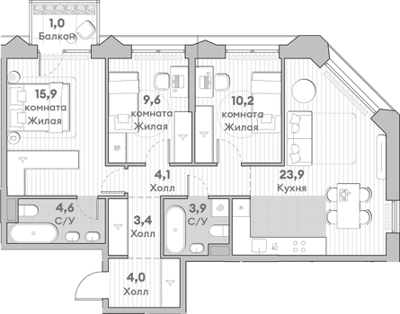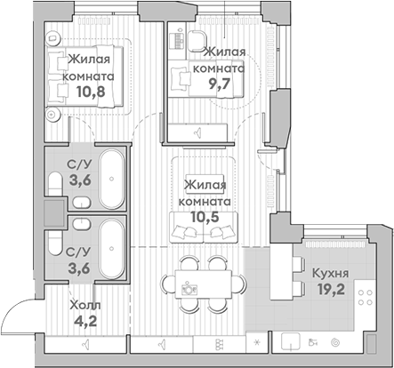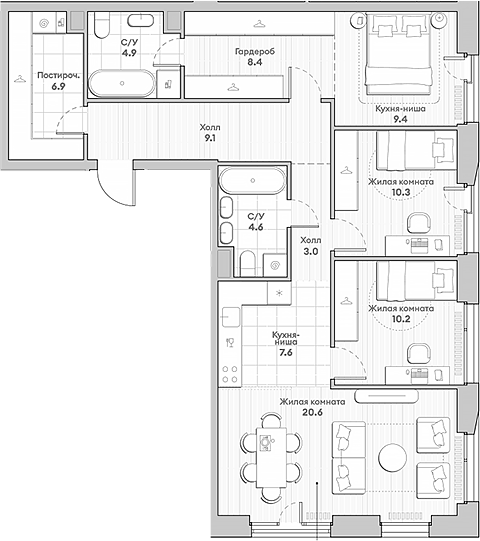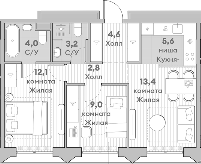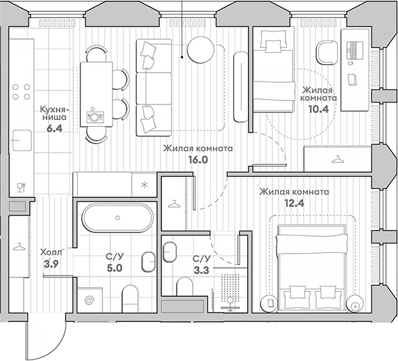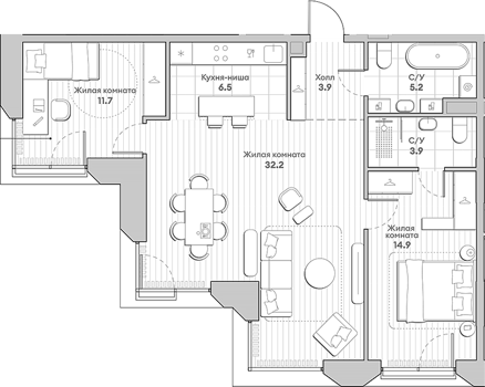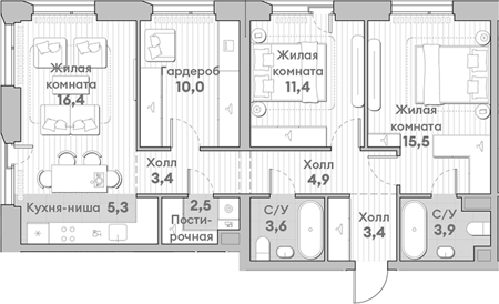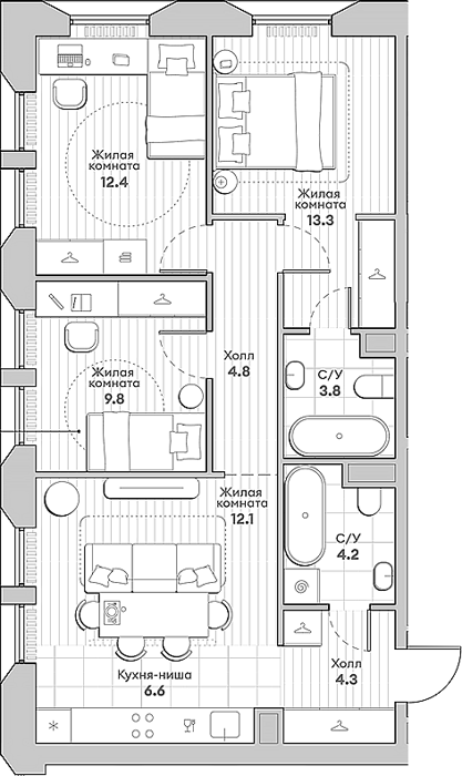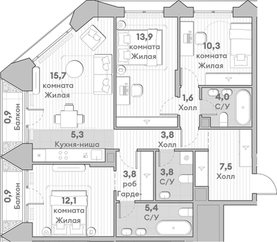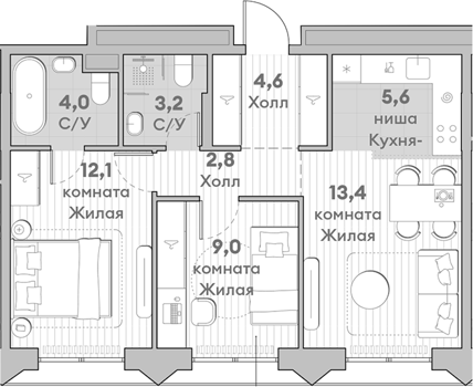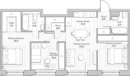 Проект предлагает широкий выбор квартир — от уютных студий до просторных многокомнатных апартаментов, что позволяет каждому найти идеальное жилье под свои нужды