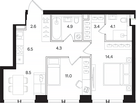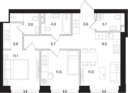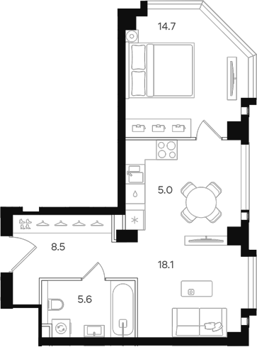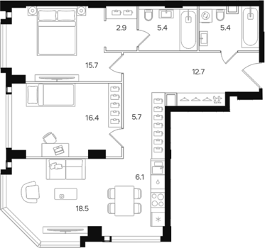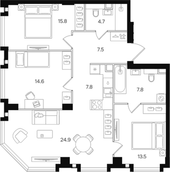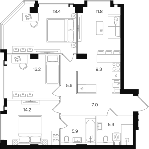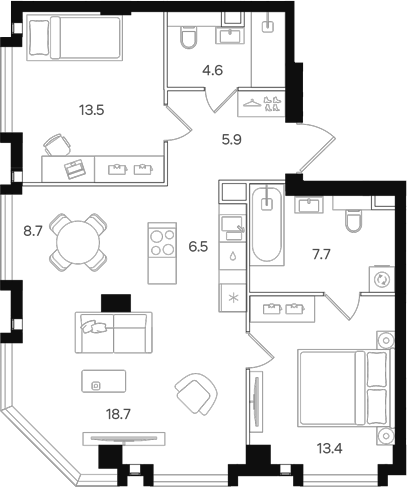 Квартиры с террасами, двухуровневые пентхаусы, эффектное угловое остекление и ванные комнаты с окном обеспечивают максимальный комфорт и индивидуальность