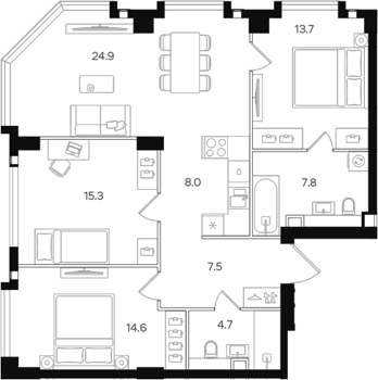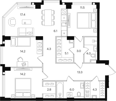 Уникальные планировки с угловым остеклением, террасами и двухуровневыми пентхаусами