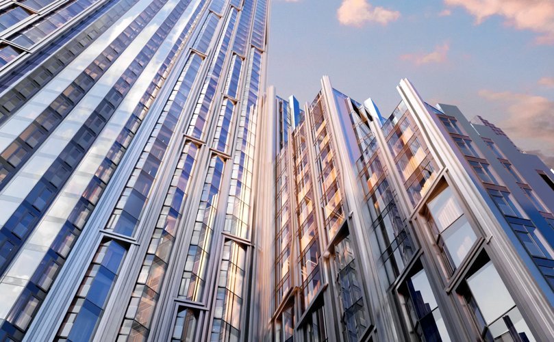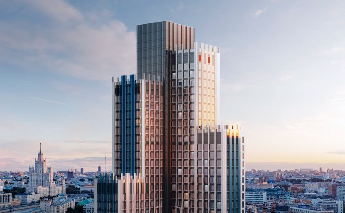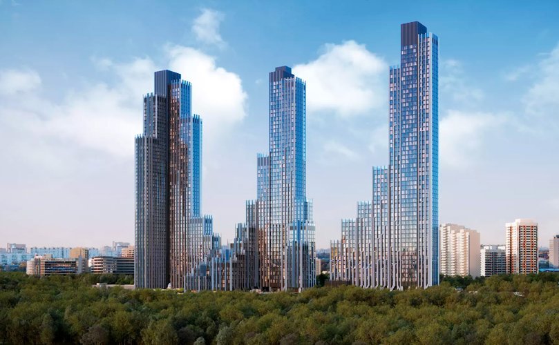 Проект включает три корпуса высотой до 58 этажей с панорамным остеклением и современным дизайном