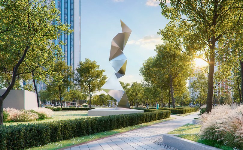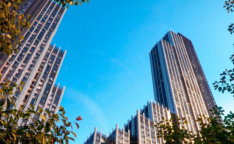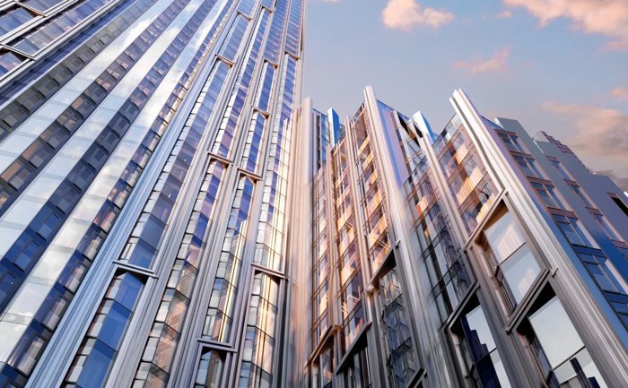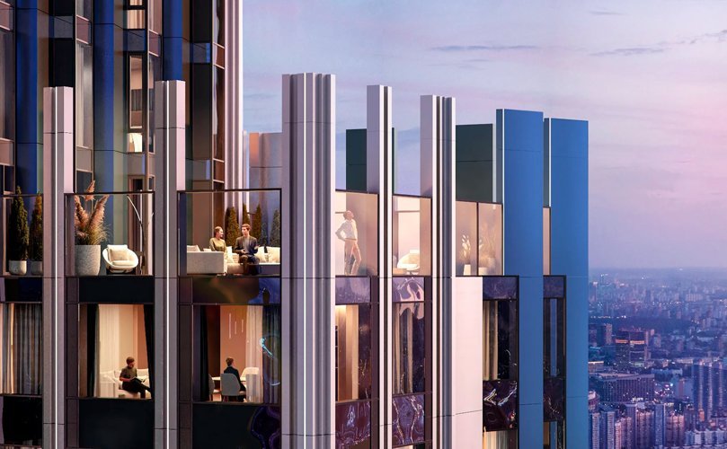 Высотные корпуса до 58 этажей с панорамным остеклением создают уникальный облик, а динамичные фасады подчеркивают индивидуальность проекта
