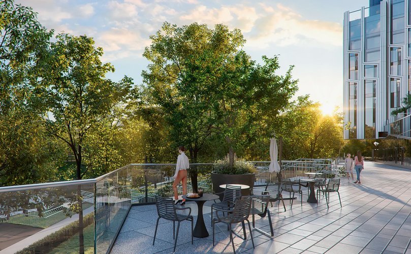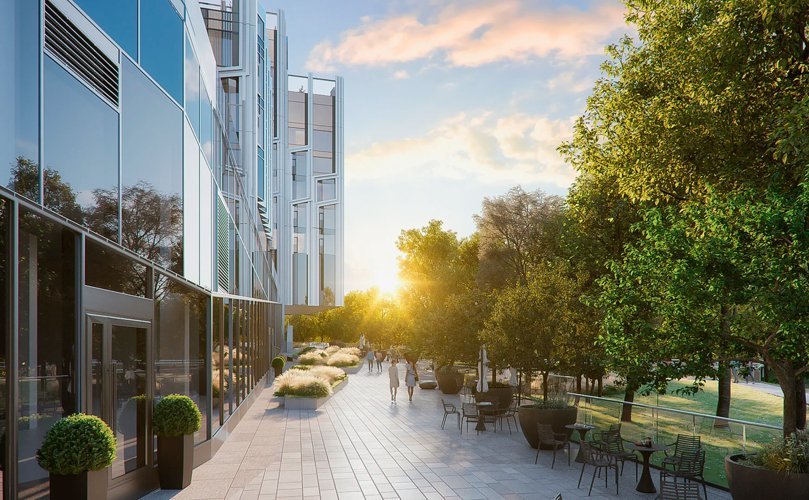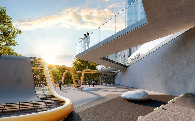 На территории предусмотрены детский сад, фитнес-клуб с бассейном, гастрономические пространства, коворкинги и зоны отдыха