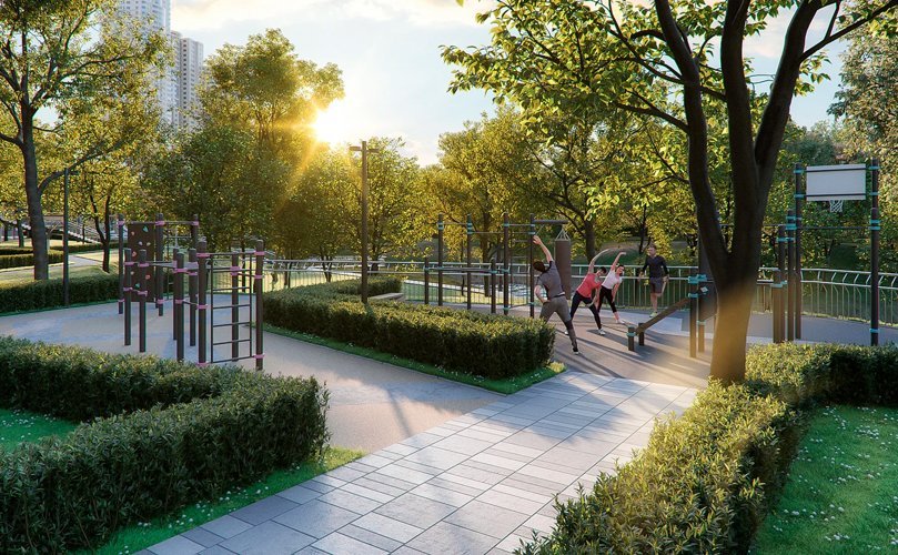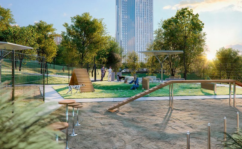 Комплекс гармонично сочетает динамику мегаполиса с природными ландшафтами, находясь рядом с Юго-Западным лесопарком