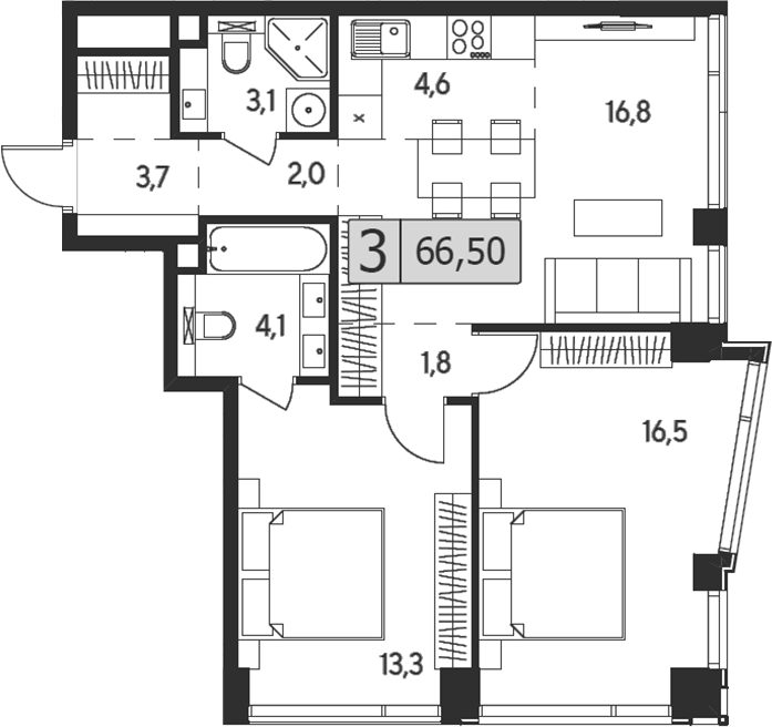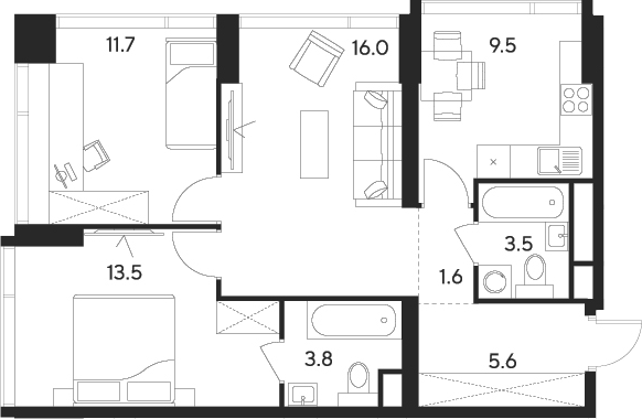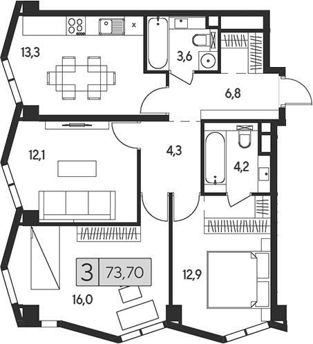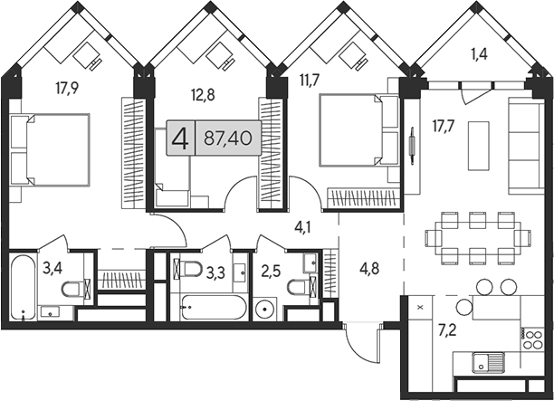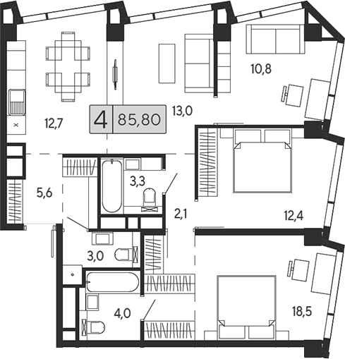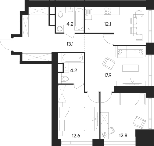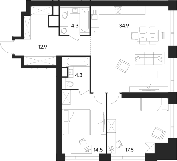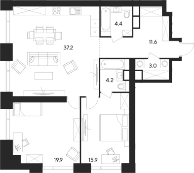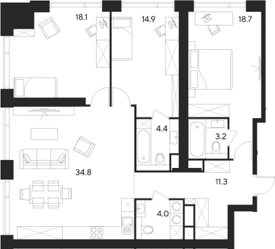 Просторные апартаменты с современными планировками, продуманными до мелочей
