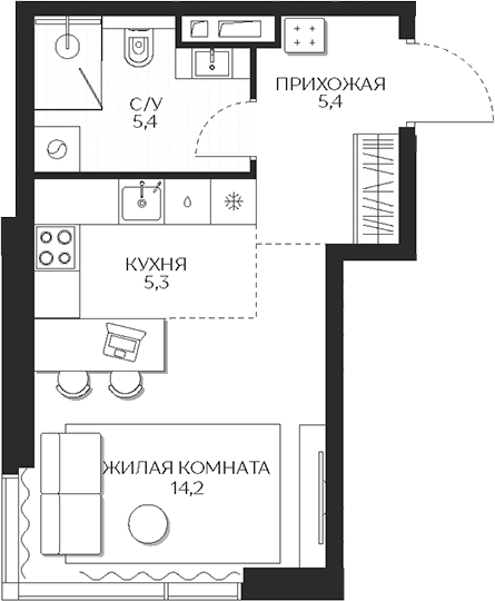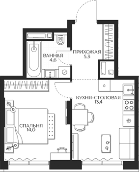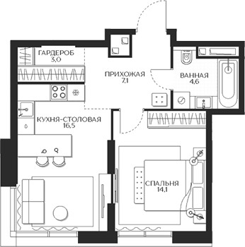 Площадь от 30.3 м2