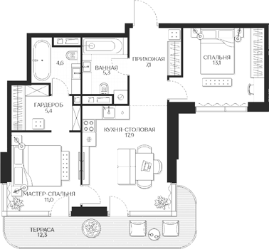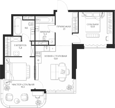 Площадь от 56.8 м2