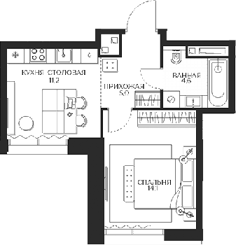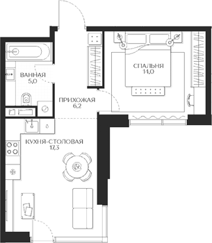 Площадь от 34.9 м2