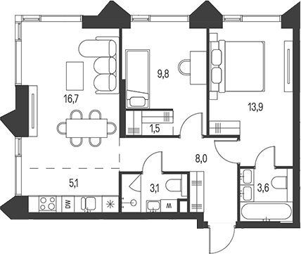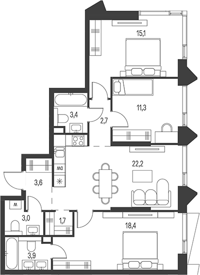 Первоначальный взнос — 30%, ежемесячные платежи — от 140 000 рублей, остаток в размере 70% выплачивается через 15 месяцев от даты ДДУ. Возможен переход на ипотеку.
