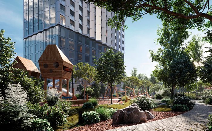магазины, кафе, фитнес-центры, детские площадки и зоны отдыха внутри комплекса