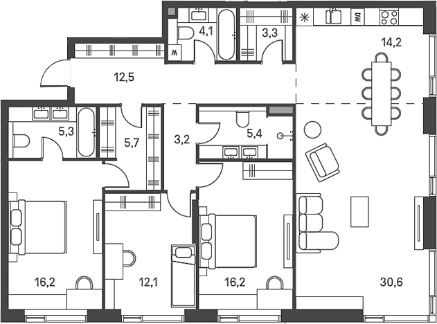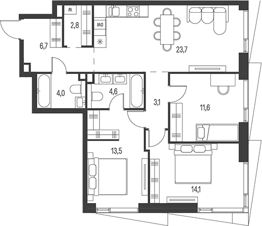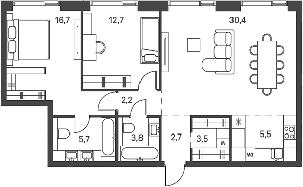 Первоначальный взнос — 30%, ежемесячные платежи — от 100 000 рублей, остаток в размере 70% выплачивается через 12 месяцев от даты ДДУ. Возможен переход на ипотеку.