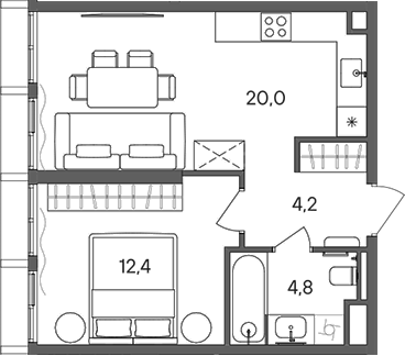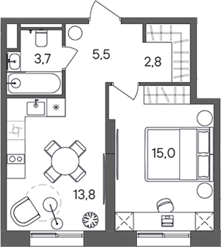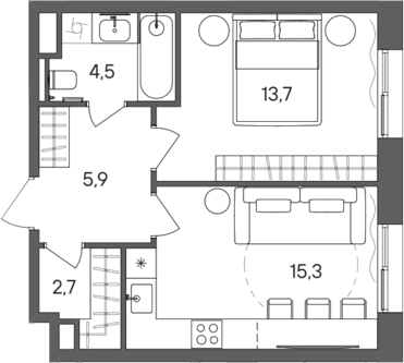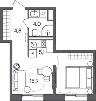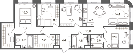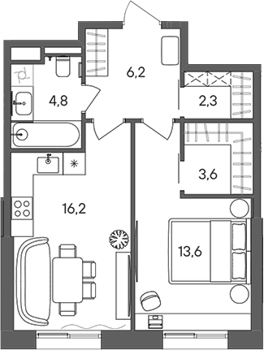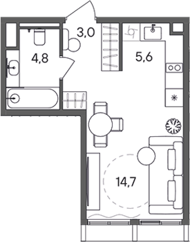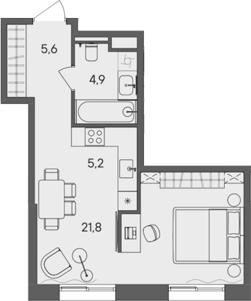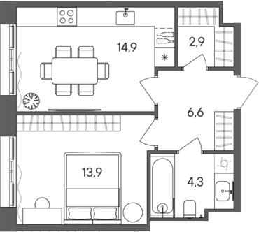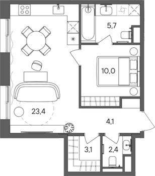 Площадь от 34.4 м2