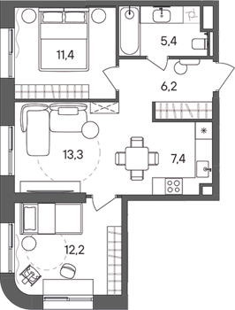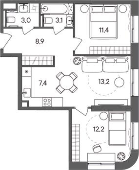 Площадь от 54.2 м2