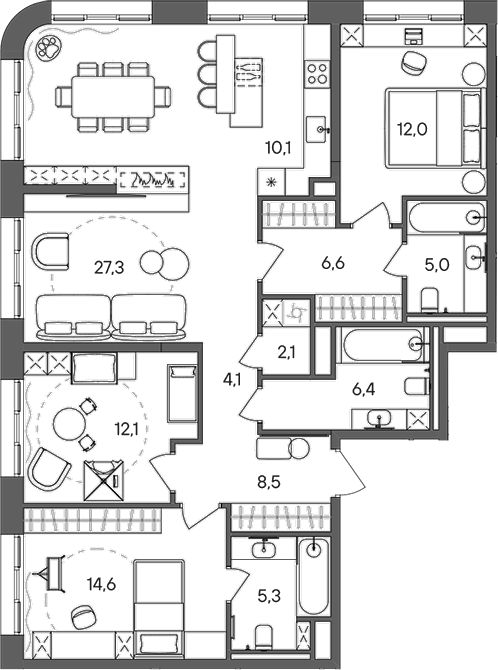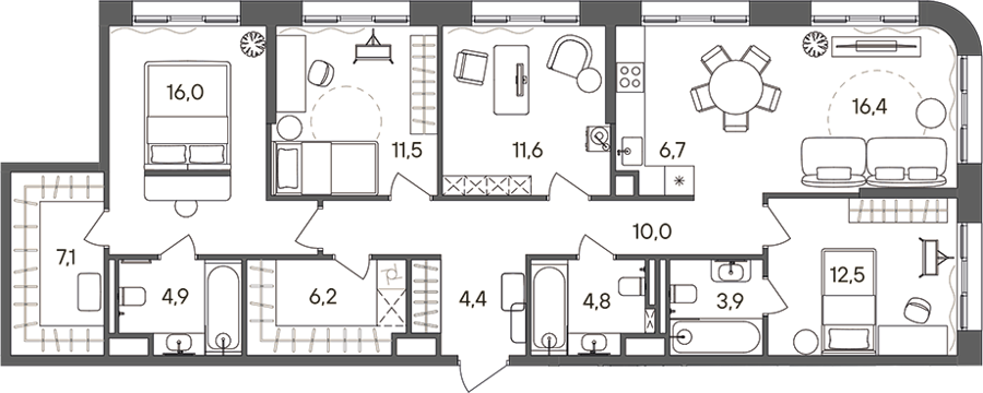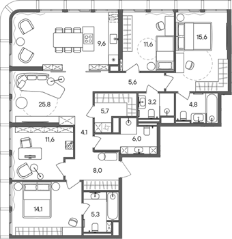 Площадь от 114.1 м2
