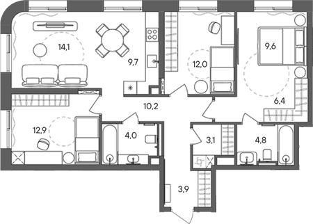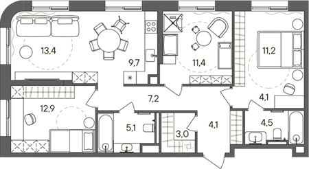 Площадь от 84.4 м2