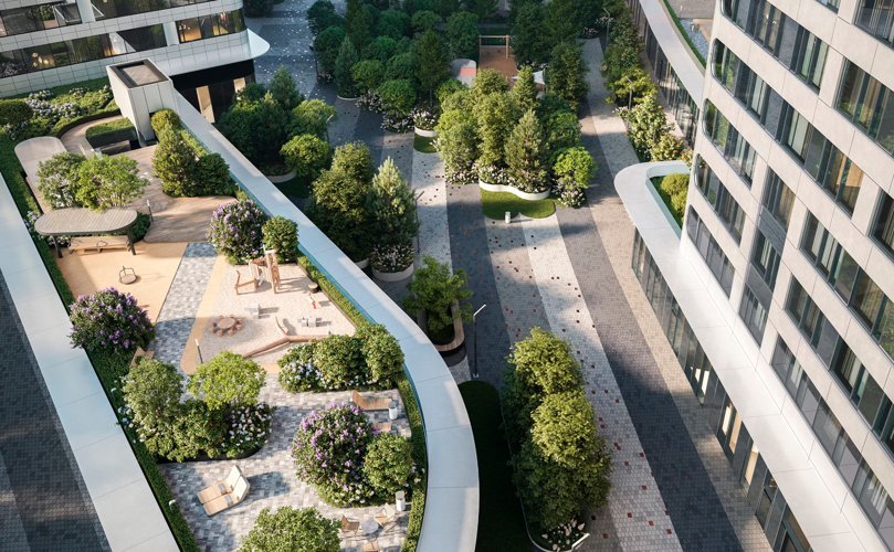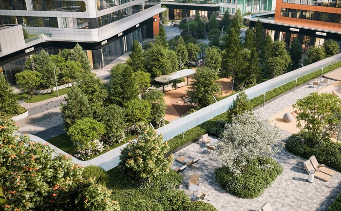 магазины, рестораны, фитнес-центры, детские площадки и зоны отдыха внутри комплекса