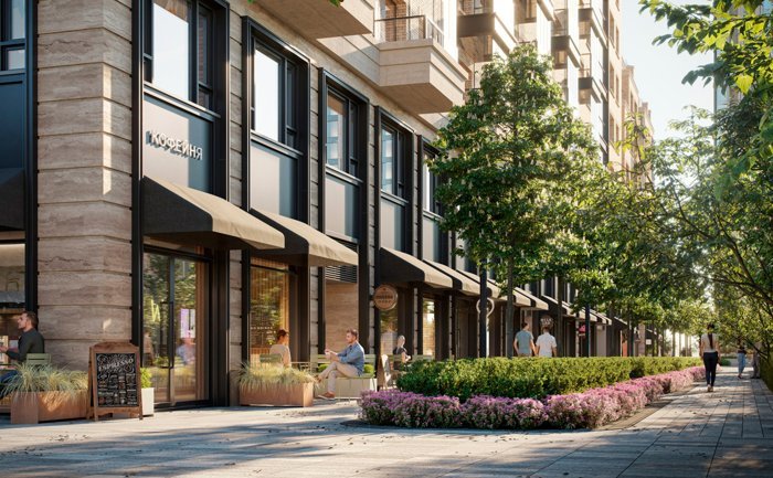 магазины, кафе, фитнес-центры, детские площадки и зоны отдыха внутри комплекса