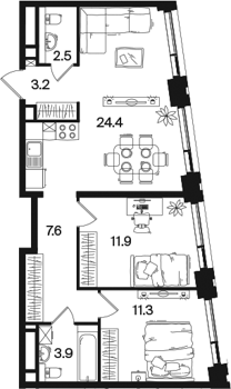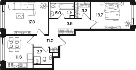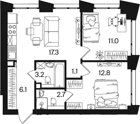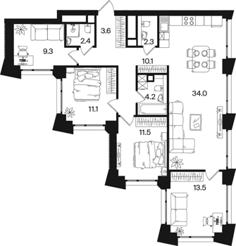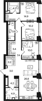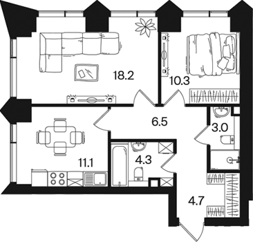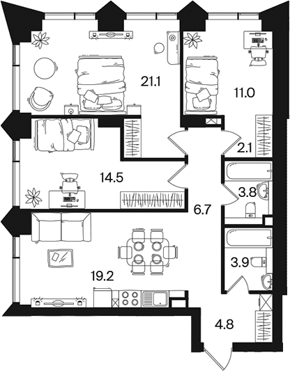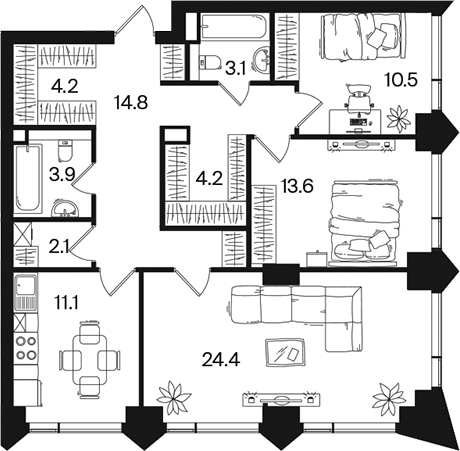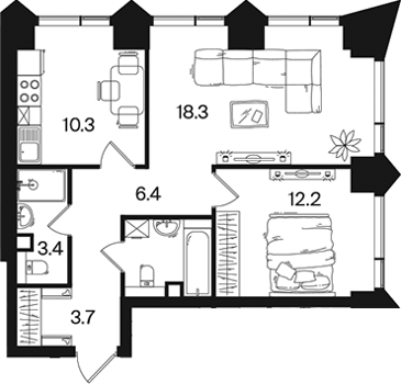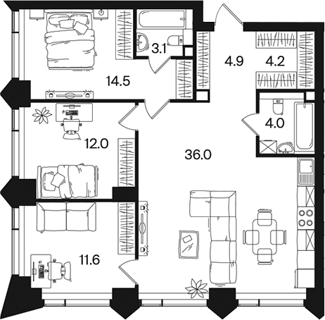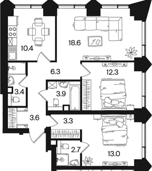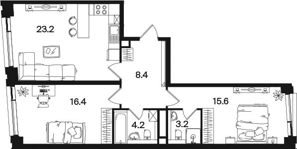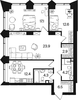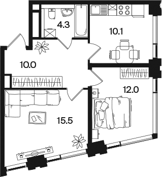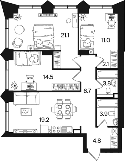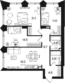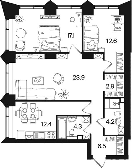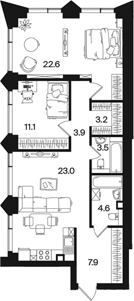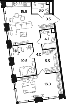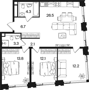 Квартиры с панорамным остеклением и высотой потолков до 3,3 метров открывают захватывающие виды на город и обеспечивают максимальное проникновение естественного света