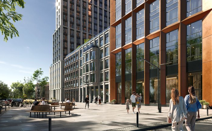 На территории комплекса предусмотрены детский сад, начальная школа, коворкинги, кафе, рестораны и бутики, а также зоны для отдыха и спорта