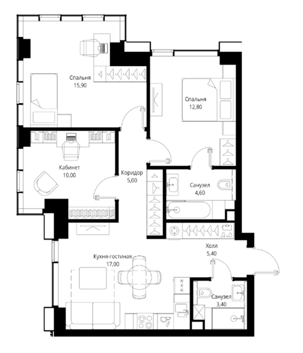 Жилой комплекс Cityzen предлагает 196 уникальных планировочных решений, включая квартиры с террасами, эркерами и балконами, а также отделку MR Base по высоким стандартам MR Group