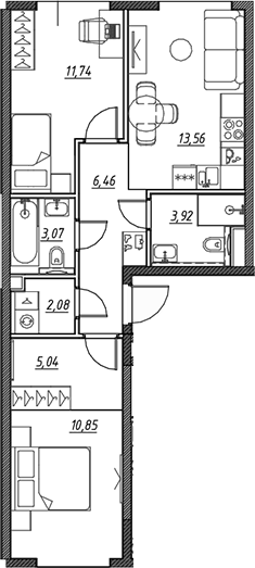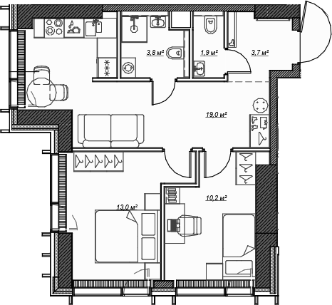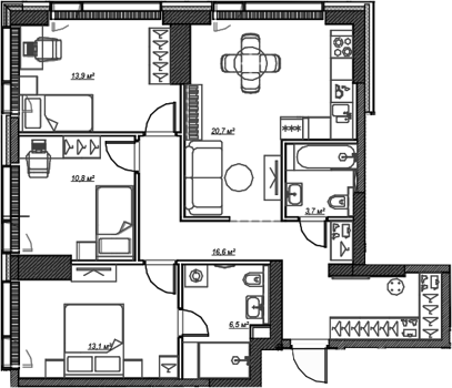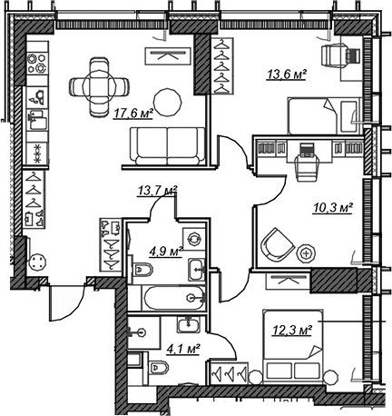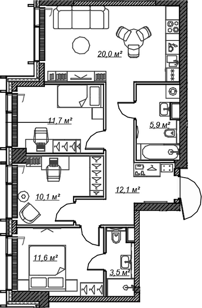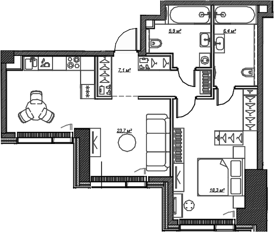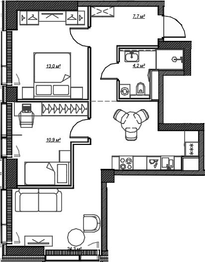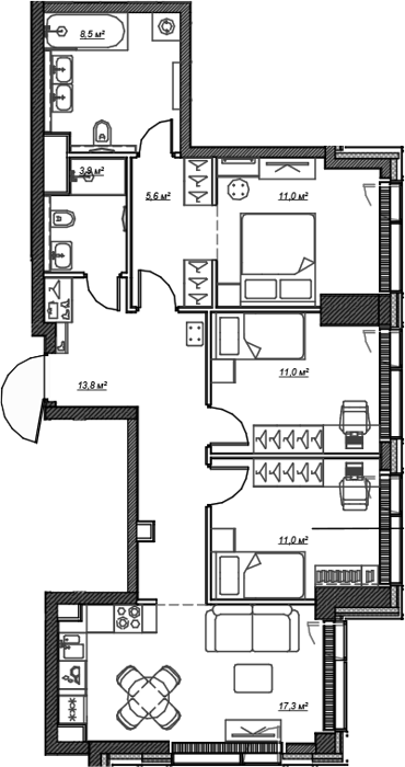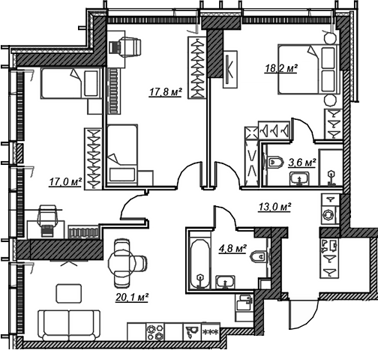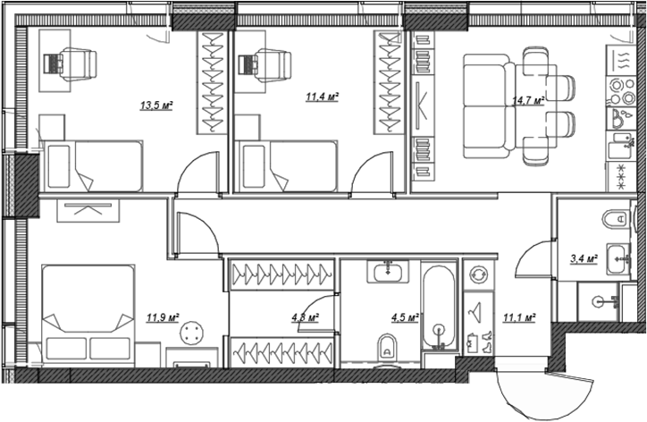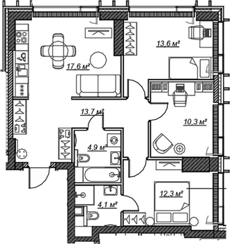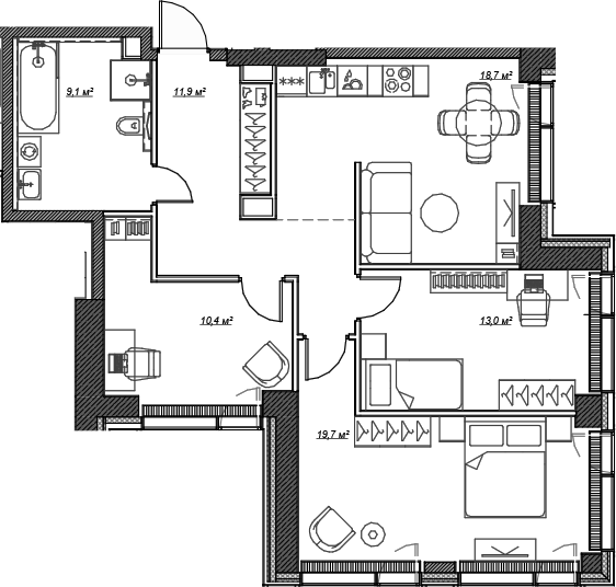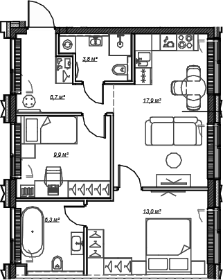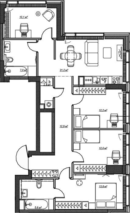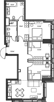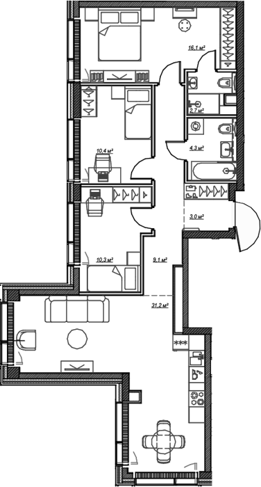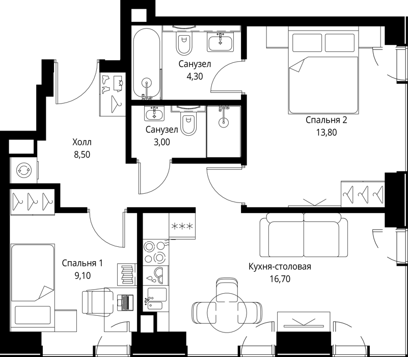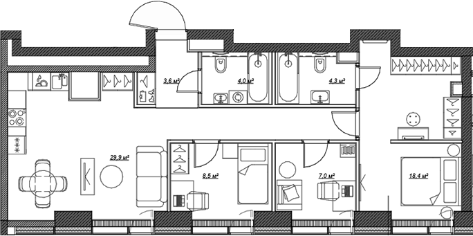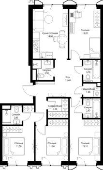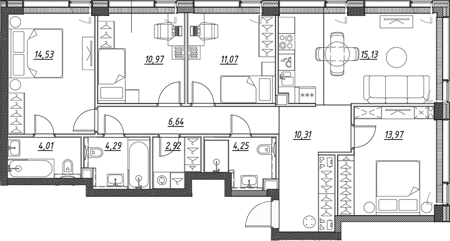 Более 200 планировочных решений, включая студии и шестикомнатные квартиры с террасами, мастер-спальнями и кладовыми. Высота потолков до 2,9 м, панорамное остекление и предчистовая отделка MR Base
