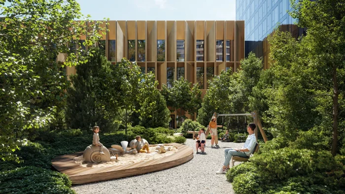 На территории предусмотрены фитнес-клуб с бассейном, коворкинг, кафе, рестораны, воркаут-площадки, а также коммерческие помещения для магазинов и салонов красоты