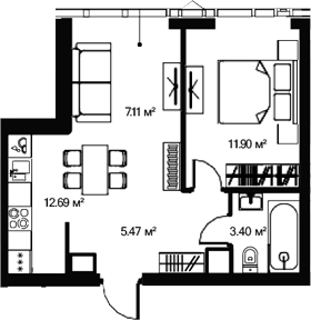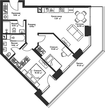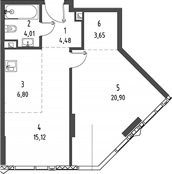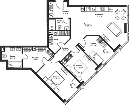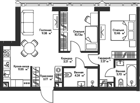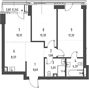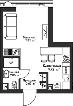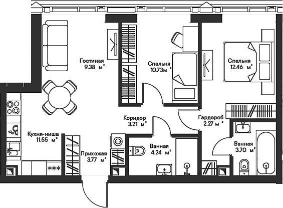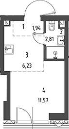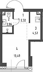 Площадь от 22.55 м2
