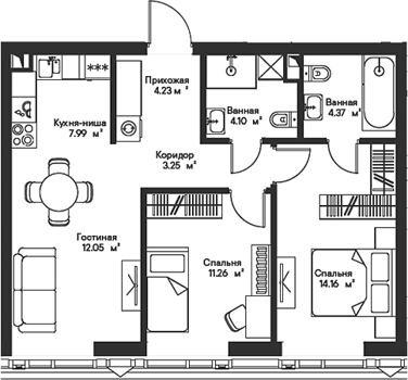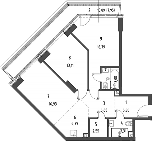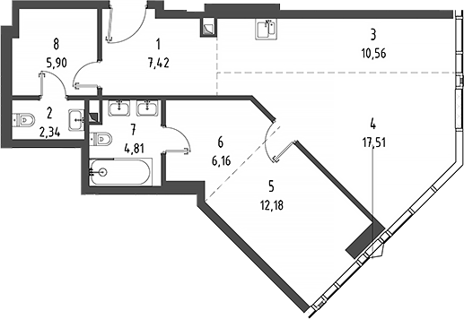 Площадь от 58 м2