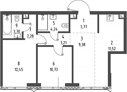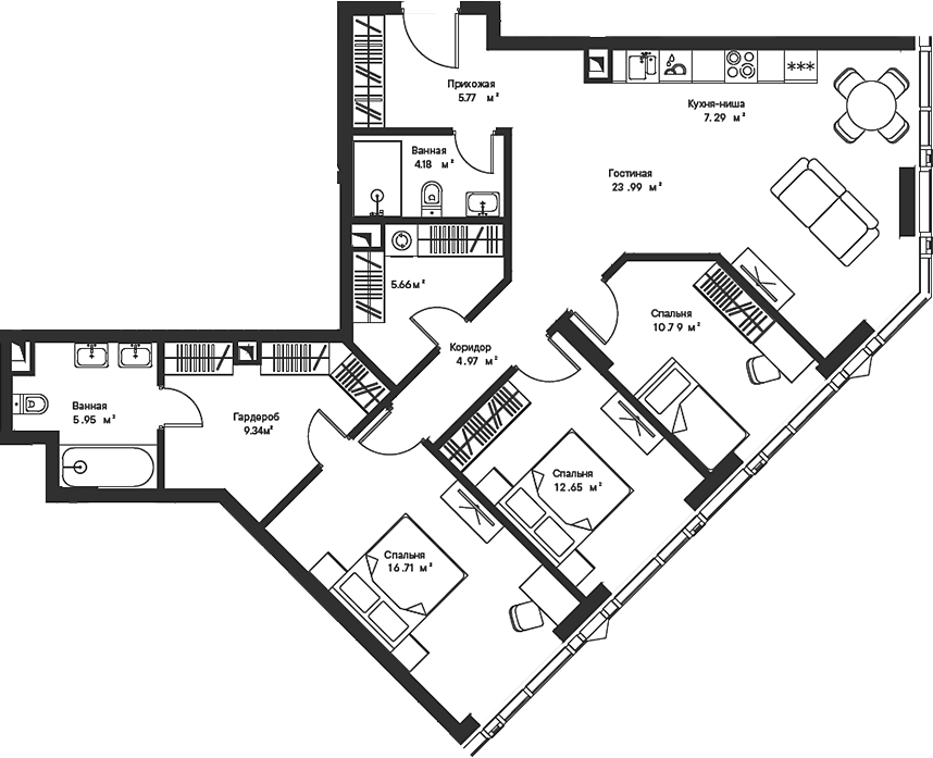 Площадь от 95.56 м2