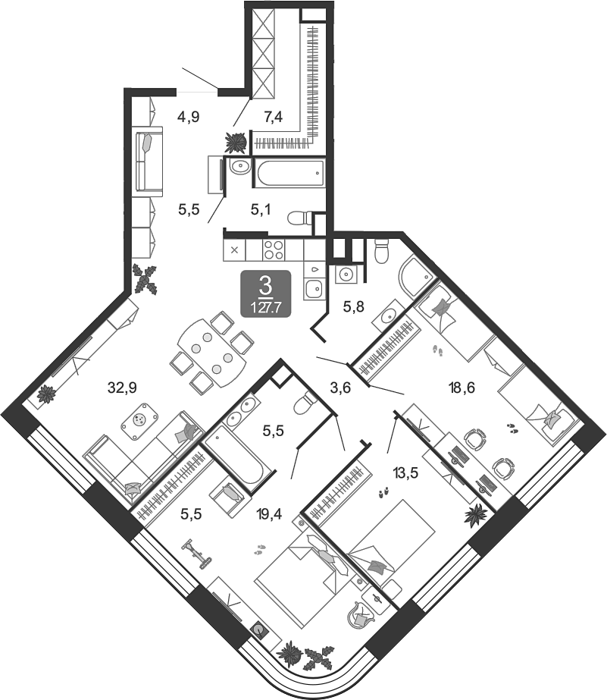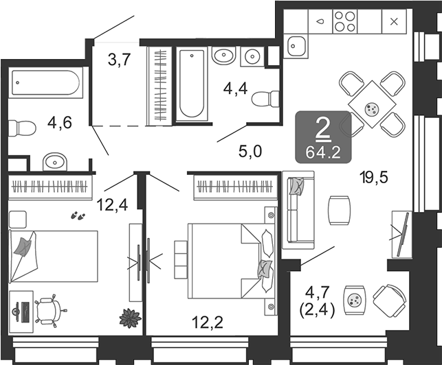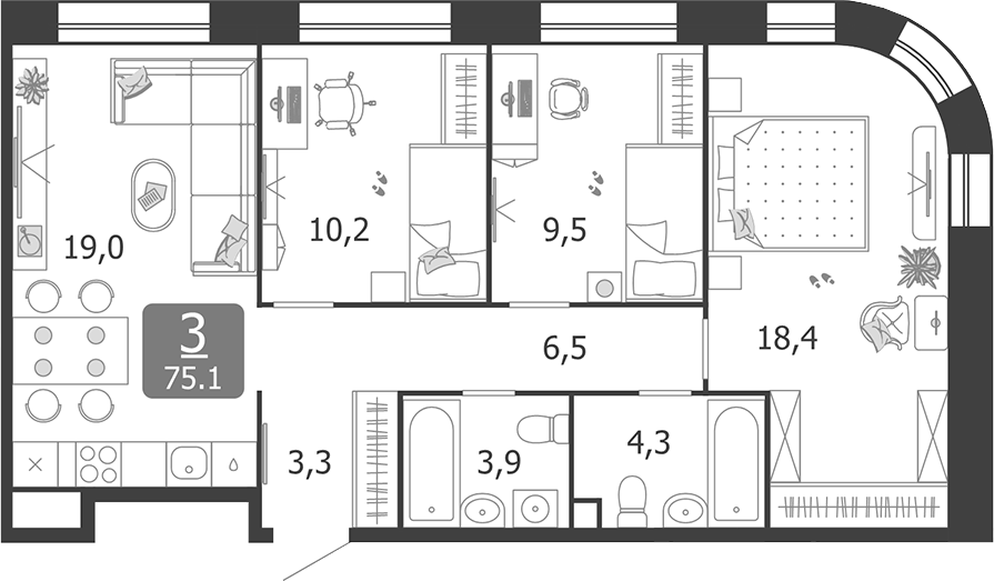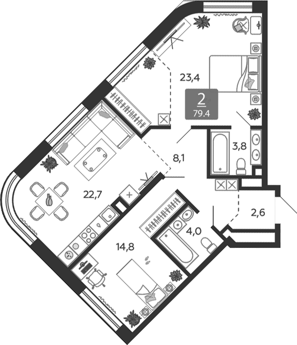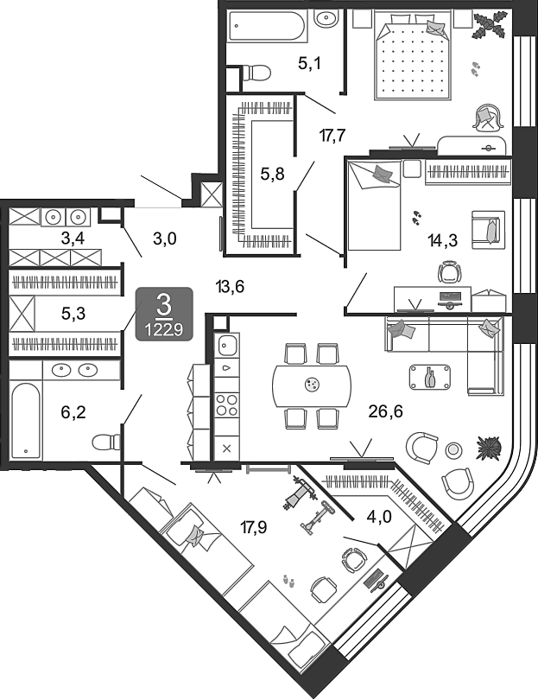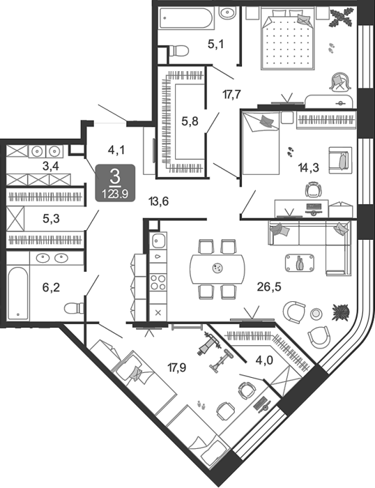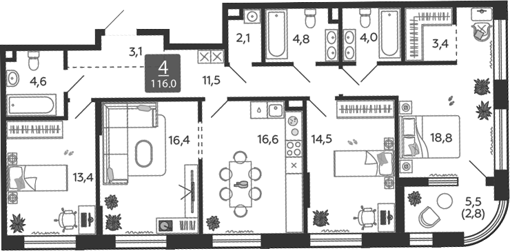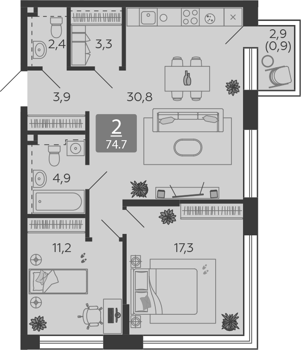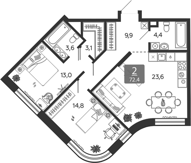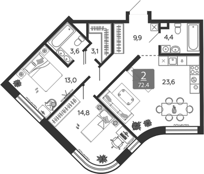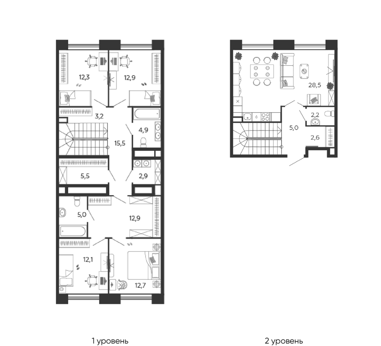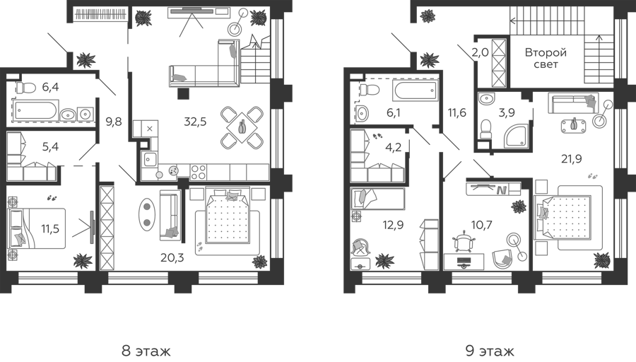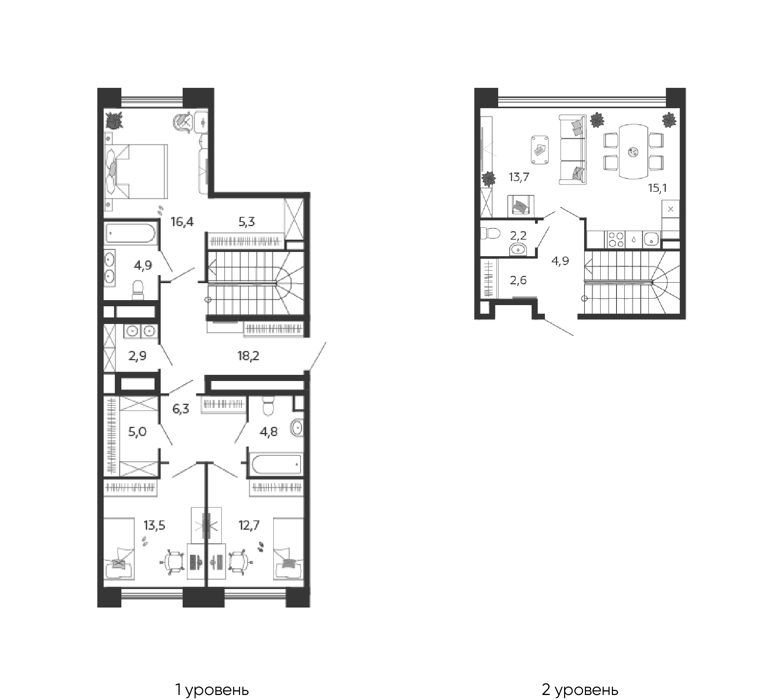 В комплексе представлены разные форматы — от двухэтажных таунхаусов до 28-этажных башен, включая урбан-виллы и квартиры с террасами, что позволяет выбрать жилье на любой вкус