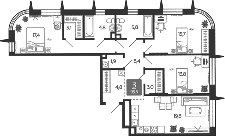 Большинство квартир оснащены панорамным остеклением, предлагая виды на Москву-реку, парки и зеленые зоны